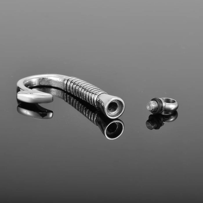 Available in silver or black, this fishing hook-shaped memorial necklace is a unique and symbolic way to keep the memory of a loved one close. Crafted from durable stainless steel, it holds a small amount of ashes, making it a lasting tribute to someone who loved the water or fishing.